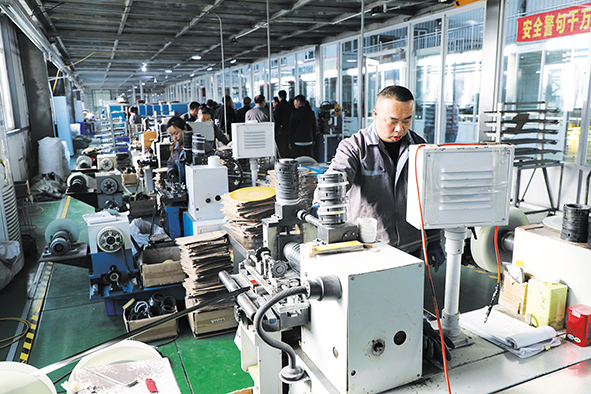 走进辽宁秉航非晶科技有限公司生产车间,一台台设备高速运转,一卷卷非晶纳米材料摆放整齐,工作人员正在进行产品检测,以确保该公司的高耐腐蚀铁基非晶软磁材料项目顺利实施。
