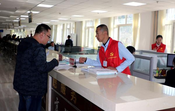 志愿者正在引导群众办事。